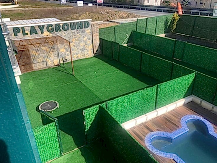 - Büyük iç / dış mekan oyun alanları Çakıl, Halı ve Çim bahçeler